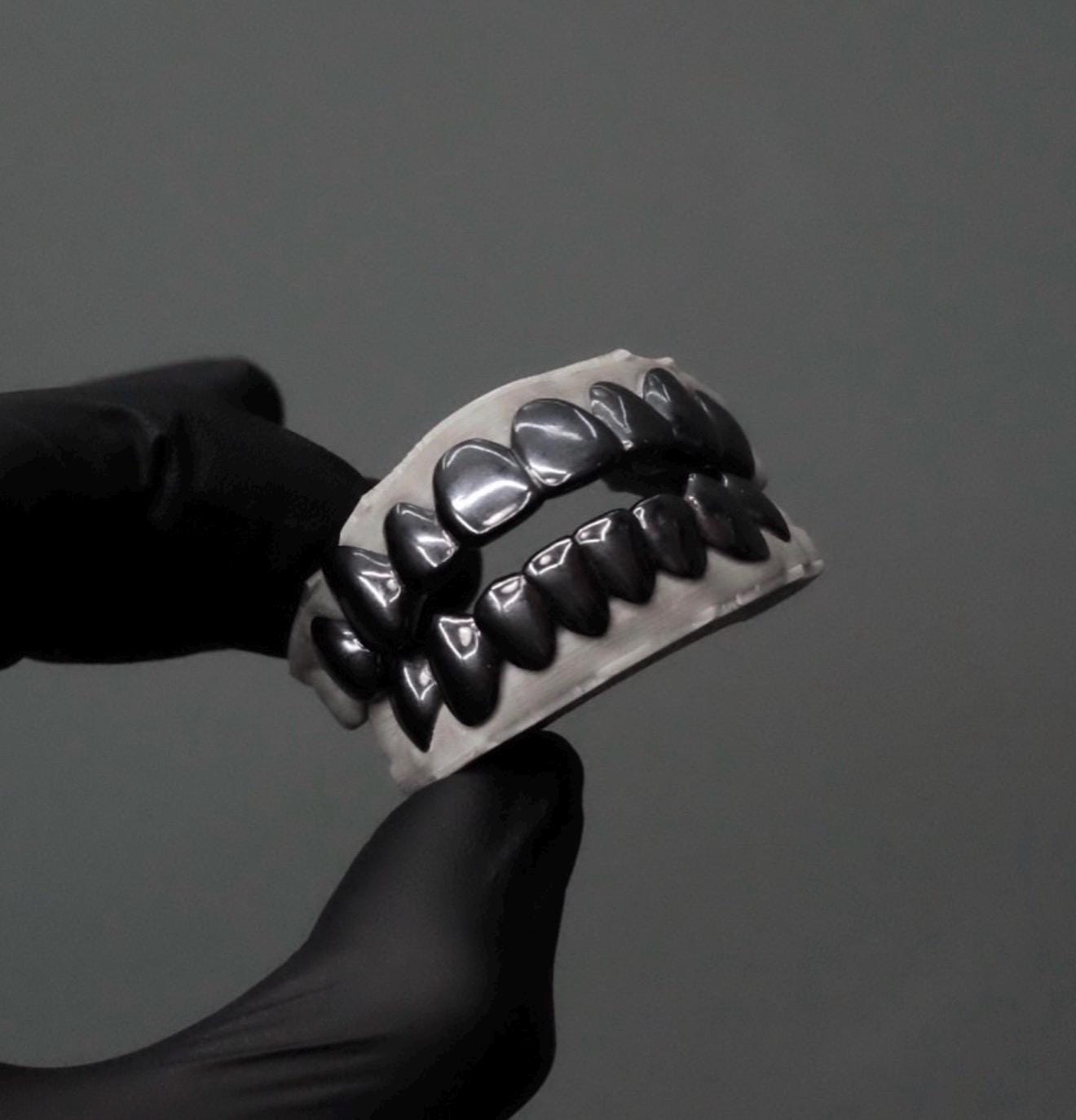 Handcrafted custom grillz engineered for precision fit and lasting quality. Each piece is individually created from your dental mold using premium materials—solid silver or genuine gold (10K, 14K, 18K, or 22K) in yellow, white, rose, or black finishes. We incorporate triple the metal thickness of standard grillz, delivering superior durability and a refined aesthetic. The process begins with a complimentary mold kit; once your impression is returned and approved, production takes 10–14 business days. Your finished grillz ships ready to wear. Total timeline ranges from 4–6 weeks including mold creation and delivery. We accommodate custom designs and configurations—contact us to discuss your vision. Additional fees may apply for missing or broken teeth.