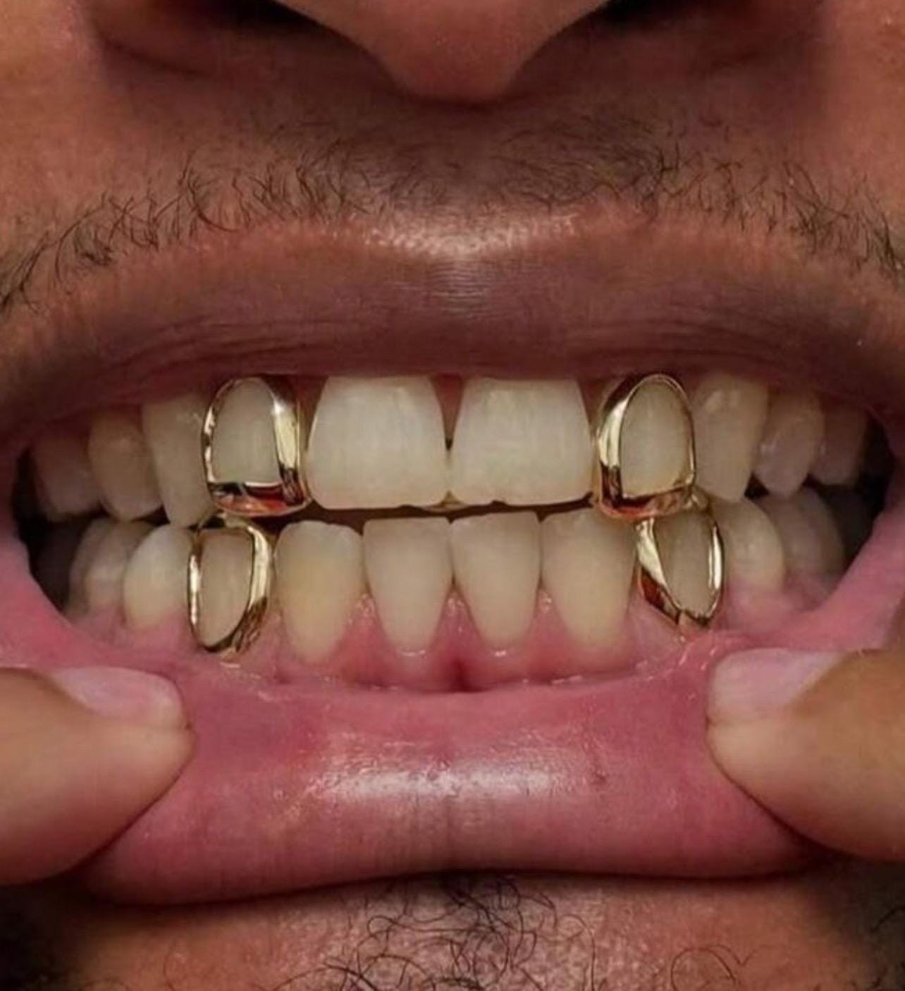 Custom Gold Grillz: Open Face Design, High-Gloss Polish
